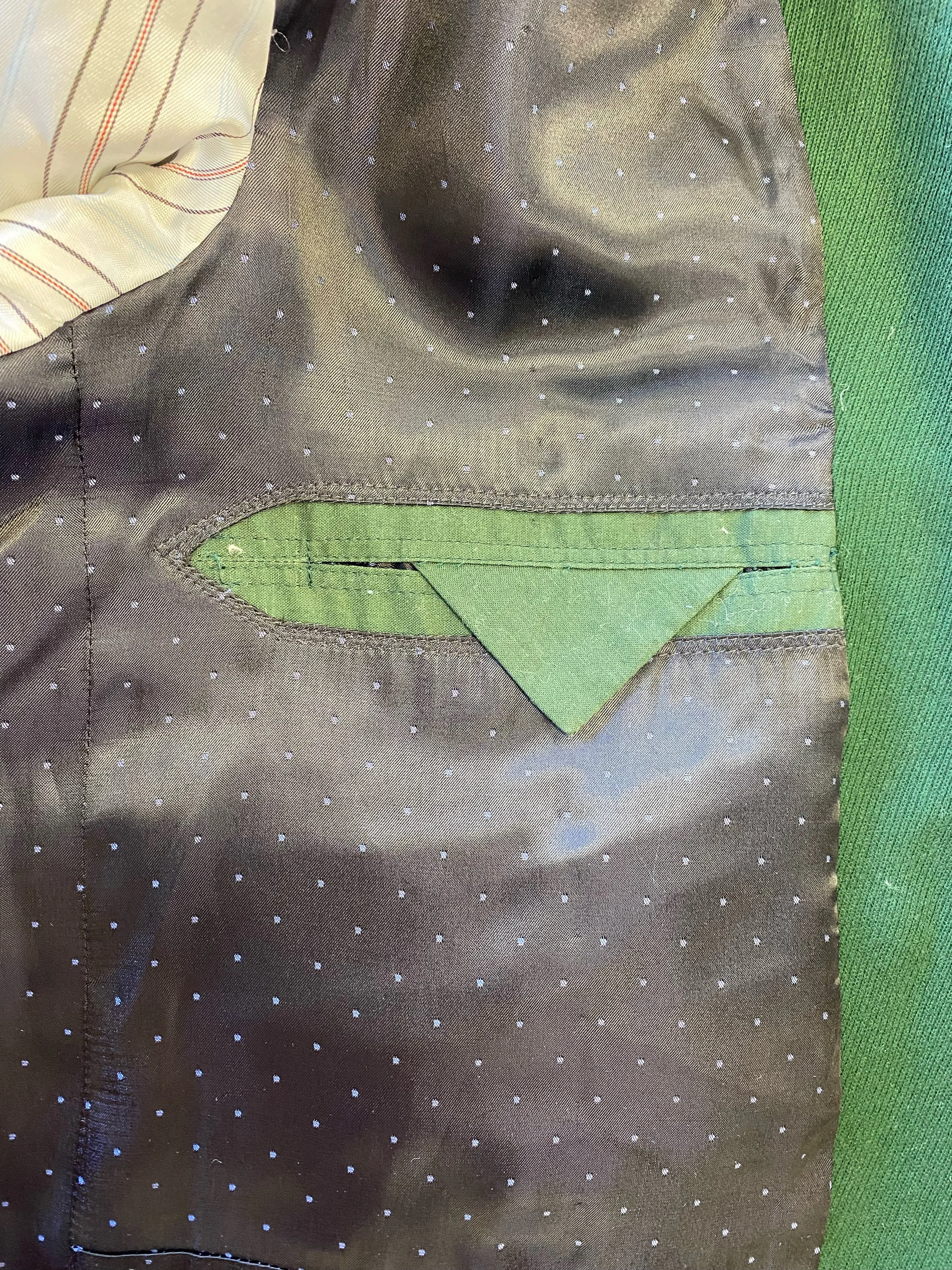 A modern suit patterned and sewn by Danielle, made from a twill weave wool with a coordinated tartan vest.